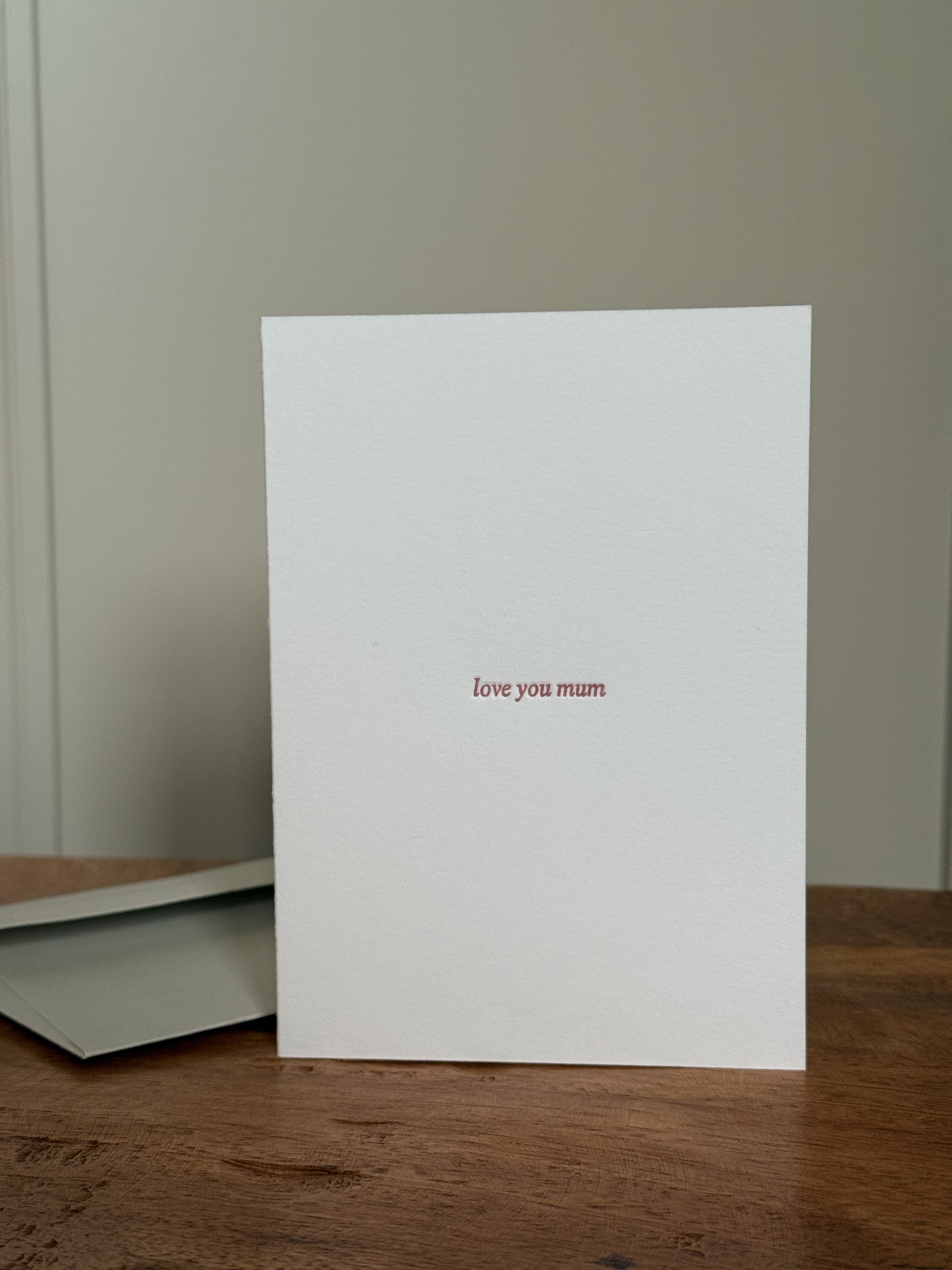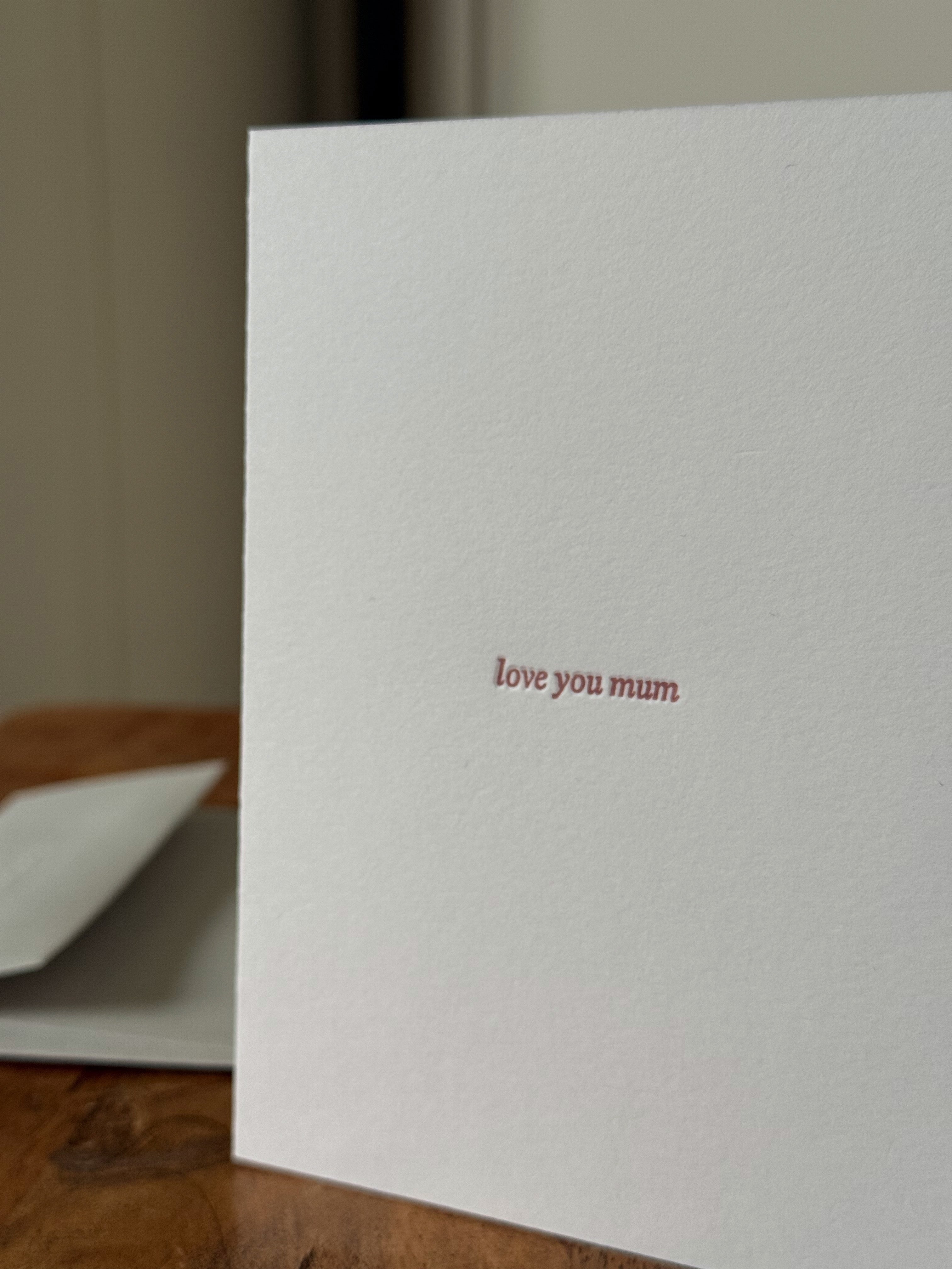 'love you mum' Letterpress Mother's Day Greetings Card
